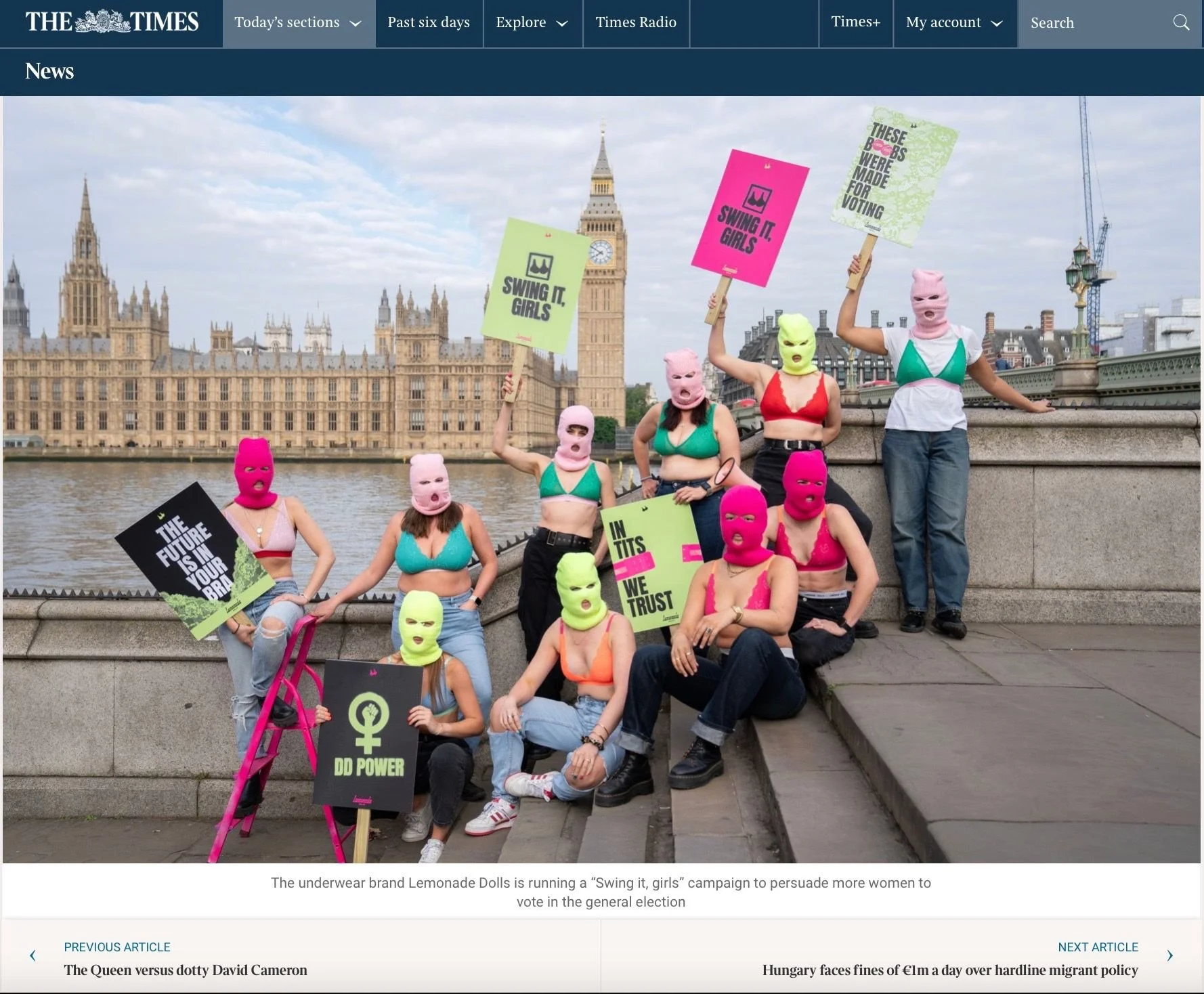 So we banded together with a number of volunteers, with no time or money to make ‘Swing it, girls’ - partnering with the bra brand Lemonade Dolls, starring Jayde Adams and with music from CHINCHILLA, as a reminder to women everywhere to get their bras back on, get out, and vote.